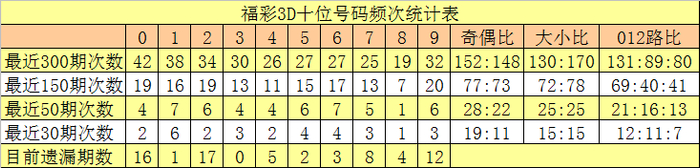 个位分析:近50期该位推崇活跃的号码有:4出现10期,7出现8期,5出现7期;推崇较冷的号码有:0、8开出1期,9开出3期。该位号码奇偶比为29:21,大小比为24:26。本期该位杀两码1、6,防号码2、3、7出现,精选一码2。