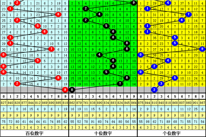 百位分析:上期百位开出奖号:2,最近9期该位奖号大小比为3:6,其中大号5、7、8出现1次,6、9出现0次,小 号0出现3次,1出现2次,2出现1次,3、4出现0次,本期百位参考大号,胆码存眷9。