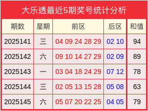 开奖追想:大乐透2025145开奖号码为05、07、20、22、25+04、05。其中大小比为3:2南川区连习家具厂,和值为79。