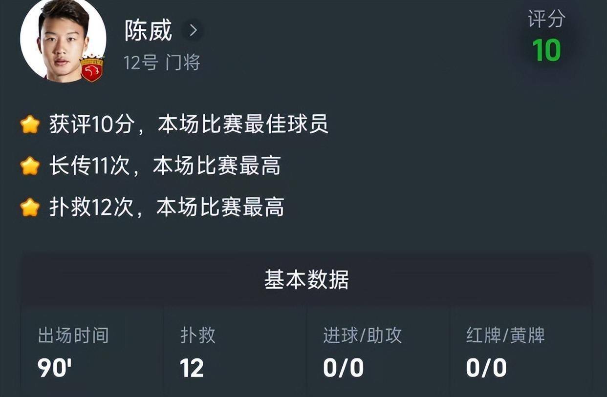 此役,陈威顶替主力门将颜骏凌坐镇上海海港球门,信得过讲授了什么叫作念“感慨之墙”。数据线路,上海海港本场遭受到了柔佛新山的狂轰滥炸,他们一共轰出了47脚射门,其中就有11次射正,但陈威却仿佛天使附体同样,高接低挡,左冲右突,一共孝顺了12次绝妙神扑,最终力保球门不失,让敌手只可“望门兴叹”。赛后他获取满分的高赞。绝不夸张地说,这场比赛淌若不是陈威,上海海港根柢不要思保平,就怕会透彻被柔佛新山打花了,要遭受一场“惊天惨案”。
