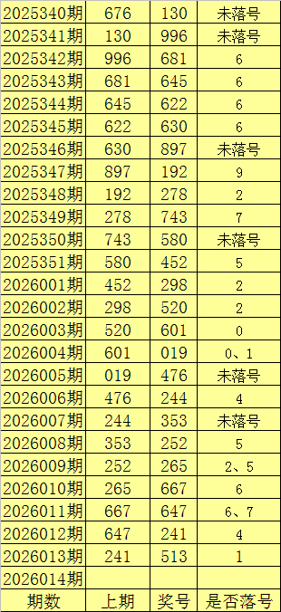发布日期:2026-01-15 07:11 点击次数:121一、上期回顾:福彩3D第2026013期开出奖号513。