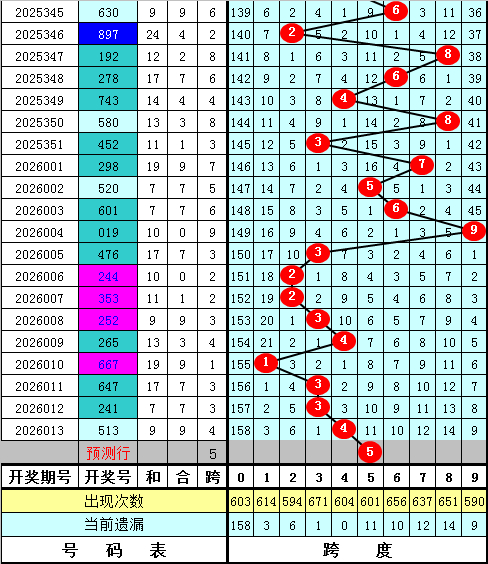 福彩3D第2026013期最大跨度开出4,跨度近期散布相比密集,主要散布在1-4区段,本期瞻望最大跨度在3-7区段出现,最大跨度温雅34567,精选跨度5。